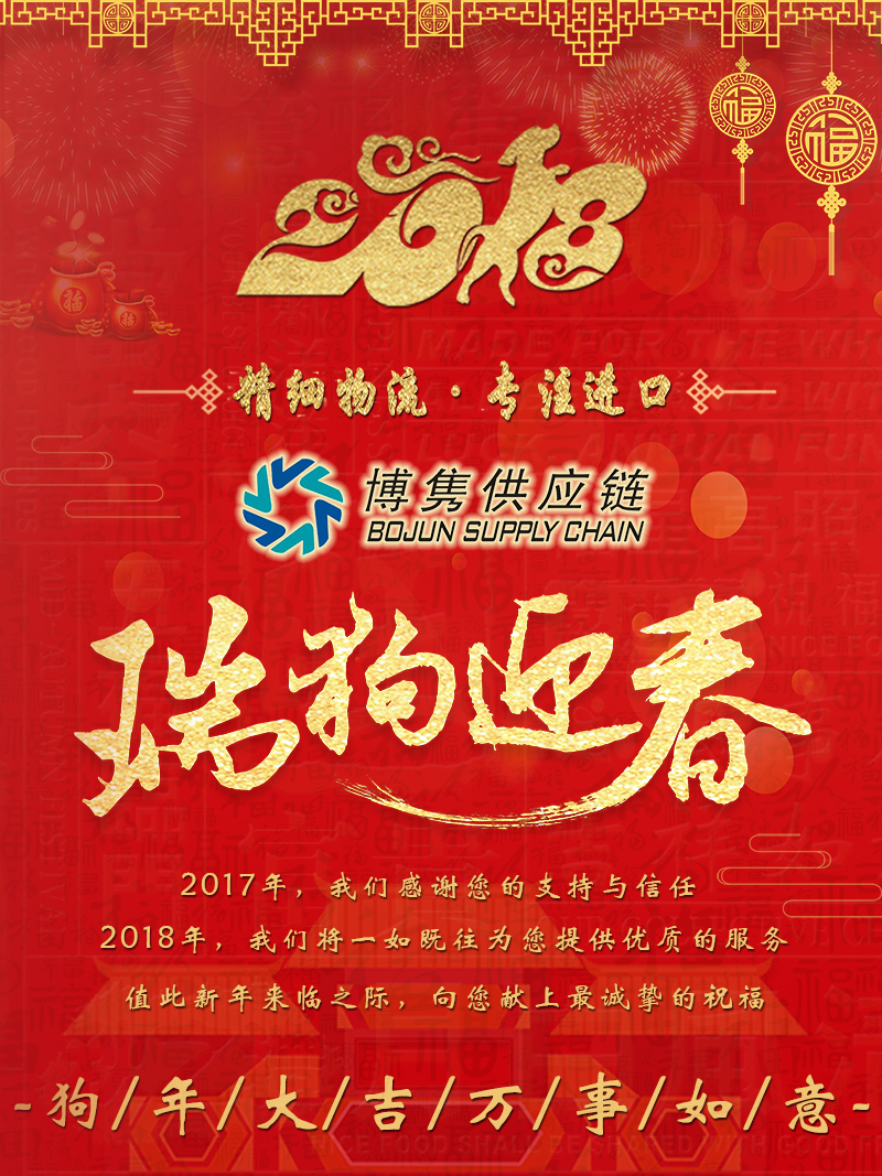 博裕木材進(jìn)口報(bào)關(guān)&博雋進(jìn)口作為一站式進(jìn)口報(bào)關(guān)供應(yīng)商,多年來我們一直堅(jiān)持“精細(xì)物流,專注進(jìn)口”的公司理念。以專業(yè)的進(jìn)口操作方案、持優(yōu)質(zhì)的服務(wù),與業(yè)界一起書寫精彩篇章。值此佳節(jié)之際,博裕&博雋進(jìn)口向業(yè)界致以美好的祝愿,祝大家在新的一年里:事業(yè)興旺、和氣致祥、身體健康、家庭康泰,萬事如意!