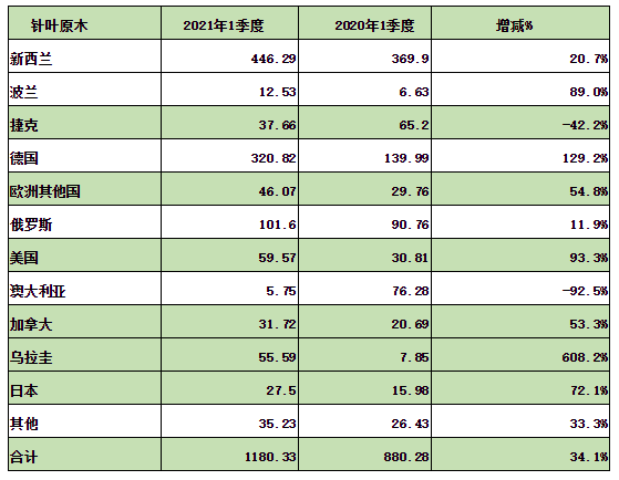 ? ? 不過各國的進口情況來看,烏拉圭、德國、新西蘭和日本市場是最受人關(guān)注的,尤其是烏拉圭市場。在全球疫情、海運堵塞等政治、經(jīng)濟等因素的作用下,為填補國內(nèi)針葉木材市場的缺口,以及降低針葉原木采購成本的考慮,國內(nèi)木材商家紛紛轉(zhuǎn)而將目光轉(zhuǎn)移到烏拉圭等南美國家的針葉原木上,這是一季度烏拉圭針葉原木進口數(shù)量大幅度增長的原因。